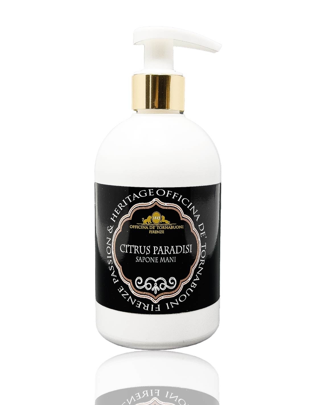 The magic of Citrus Paradisi begins with its exclusive formula, enriched only with super pure natural ingredients. This gentle hand soap offers a mini-sensory journey in the moments it takes to clean the hands. The zesty fresh citrus aroma both refreshes and boosts the senses while ensuring a pure and safe cleanse for all skin types. The natural formula is free from sodium laureth sulfates, harsh detergents, and dyes, to respect all skins. Rediscover the pleasure of little daily gestures, transformed into luxurious and enriching experiences.